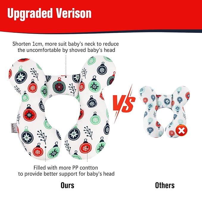 U Shaped Design: baby support pillow provide a better support for baby's head, and Reduce width of the neck support part which may not push baby's head to feel uncomfortable