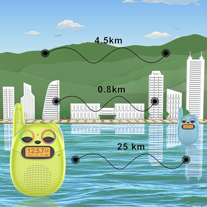 - 𝗣𝗲𝗿𝗳𝗲𝗰𝘁 𝗚𝗶𝗳𝘁𝘀 𝗳𝗼𝗿 𝗞𝗶𝗱𝘀: Qniglo walkie talkies for kids rechargeable come in adorable colors and are well packaged in a stylish gift box, look attractive to kids. Excellent color box design makes it a wonderful birthday gift, Easter gifts, Valentine's gifts, Children's Day gifts, and Christmas gifts for 3 4 5 6 7 8 9 10 11 12-year-old girls, boys, or family group outdoor games like hiking, camping, traveling.