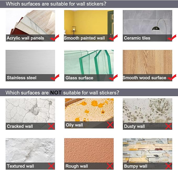 - 2 ,The baby room wall decals are applicable smooth and flat surfaces: the planet wall decal works on most smooth, flat, dry and dust free surfaces, Peel and Stick Removable,including doors, glass,walls, windows,cupboard and more;Not Suitable for Rough and Dusty Surfaces.