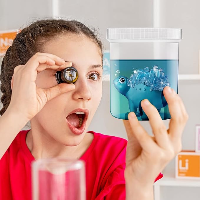 Grow Orange, Blue And Purple Dinosaur Crystals: Create beautiful crystals spines for 3 dinosaurs and bring them into life! Let your child feel like a real chemist watching the crystal grow in 72h. Chemistry has never been so fun and colorful!