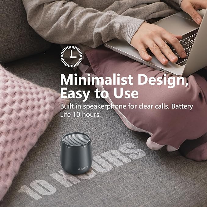 INSMY Small Bluetooth Speaker, Waterproof Mini Portable Wireless Speaker, Punchy Bass Rich Audio Stereo Pairing, Handheld Pocket Size Built in Mic for Hiking Biking Gift Laptop Tablet (Gray)