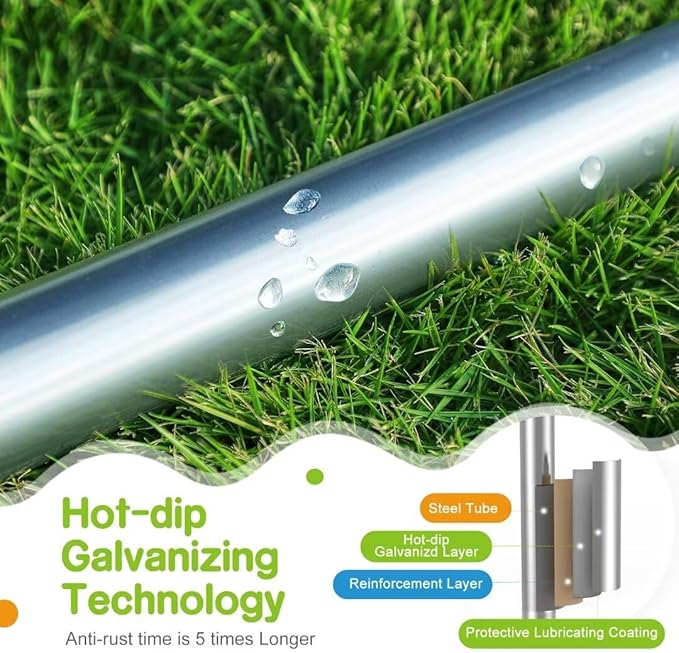 - 【Hot-dip Galvanizing Technology & Heavy-duty Frame】Zupapa trampolines use the latest hot-dip galvanizing technology to make the frame rust-proof, more stable and durable(rust-proof time is 5 times longer). And our unique two steel joints design along with W-shaped legs provide a solid base for the whole trampoline. The static load capacity is 1500 LBS, and the dynamic load capacity: 425 LBS. Comes with wind stakes, make the trampoline stands stably even in storm.