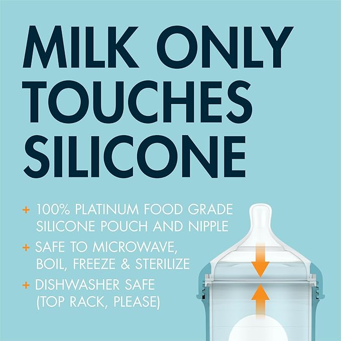 Safety of Silicone: The only thing your baby's milk comes in contact with is the 100% food-safe silicone of the nipple and pouch; made without BPA or PVC