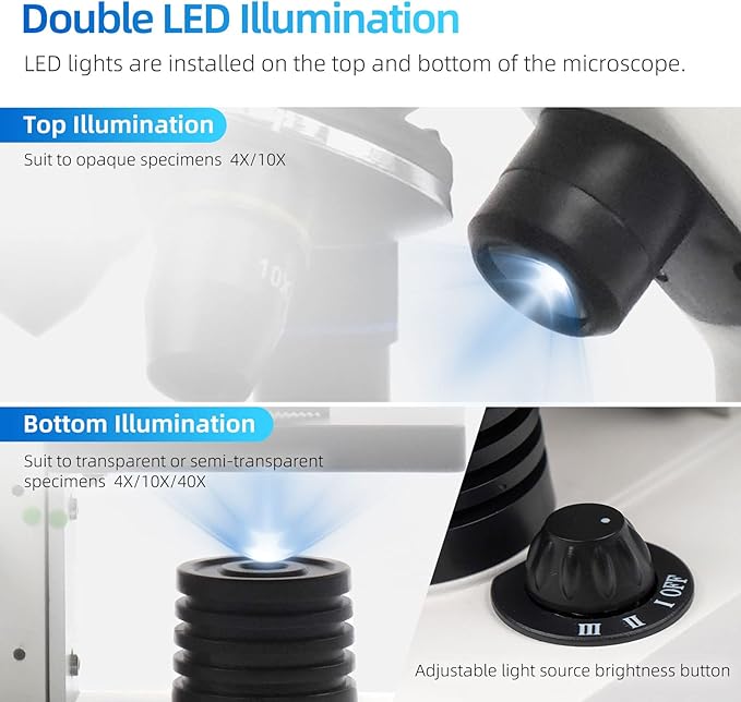 - [Dimmable Dual Light] Perfect STEM science gift for students. The kit is better than ever with an expanded accessory kit that allows you to begin exploring the world at once. Dual light design makes it possible to observe both solid objects like insects and translucent objects like cells