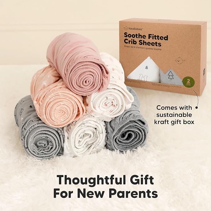 - 2-Pack Baby Crib Sheets - KeaBabies Soothe Fitted Crib Sheets for boys and girls; fit standard crib mattresses (52"x28" with height 3" to 8") perfectly, offering your baby a safe and restful sleep.