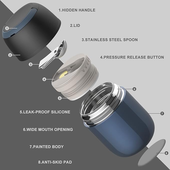 - Joopetalk thermo for hot food has an air pressure release button to help you easily open the bottle, and lunch thermo food jar is completely sealed, can prevent spilling accidentsοΌ100% Leak-ProofοΌ