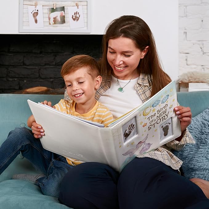 Faux Leather Cover – Durable, attractive 12" X 12" leather-bound baby album and memory book for boys and girls; 60 pages to keep your precious memories, simple unisex memory book from baby shower up to age 5.