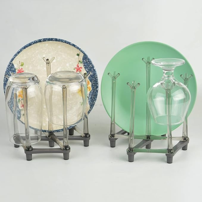 - MULTIFUNCTIONAL DISHES HOLDER: The portable countertop dishes holder rack fits most kitchenwares such as plates, bowls, cups, mugs and bottles etc. Stretchable and compact size about 7.68 x 6.5 x 2.17 inch (when fully folded), suitable for small apartments, hotels, compact kitchen, college dorm, camping etc