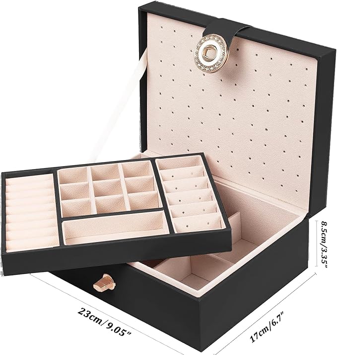 - Womens Earring Box for Girls 2 Layer Jewelry Box for Ladies Girls: Our women girls jewelry box for earrings stud rings and necklace organizer for girls made of premium PU leather.girls earring box organizer for women size: 9.05"*6.7"*3.35", weight:1.76 lbs. Portable stud earrings jewelry organizer girls jewelry holder organizer stud earrings.
