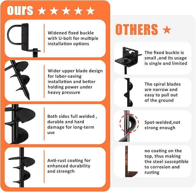 - Complete set for your convenience: These tent stakes include all the necessary components for a hassle-free installation, making it an ideal choice for both DIY enthusiasts and professionals.You will receive 4×ground anchors,4× brackets,4×top rings,4×hex head screw bolts with washers,8×screws with washers,a 14mm adapter and an open-end wrench.