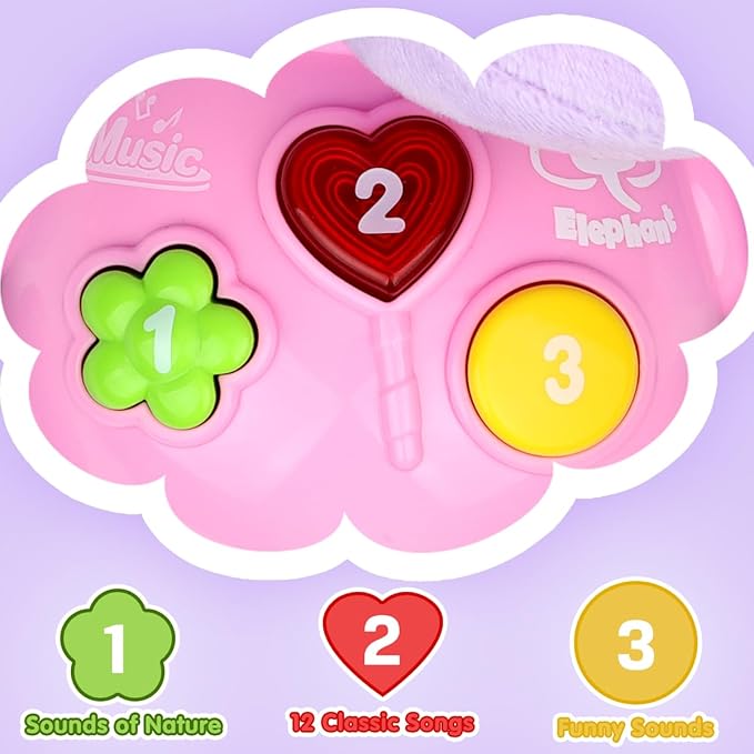- Baby Gifts for Girls & Boys: Plush baby toys with cute elephant baby music toy designs will be more attractive to your little baby and easier to catch their eye. Is the baby's, birthday gift, Christmas gift, and other holiday gifts of choice!