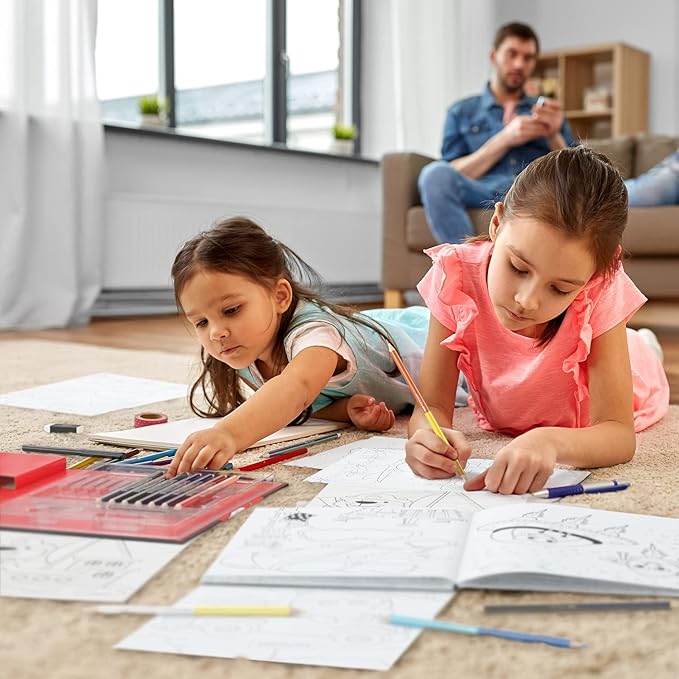 Set Includes 12 Double-Ended Colored Pencils in 24 Colors: Our coloring book set also included colored pencils for kids, one pencil sharpener, one eraser, and one black marker.