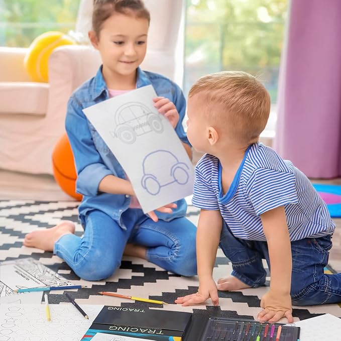 Designed for Ages 6 and Up. This travel-friendly art set is tailored for early learners and elementary-aged kids exploring shapes, outlines, and freeform drawing.
