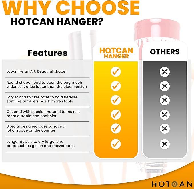 - Special Knob Design: The Knob On Each Dowel Opens The Bag Much Wider So That The Bags Dry Much Faster Than Older Version Dryer Racks. Your Bags Will Dry In A Blink! And You Can Dry 8 Gallon Or Freezer Bags Simultaneously!