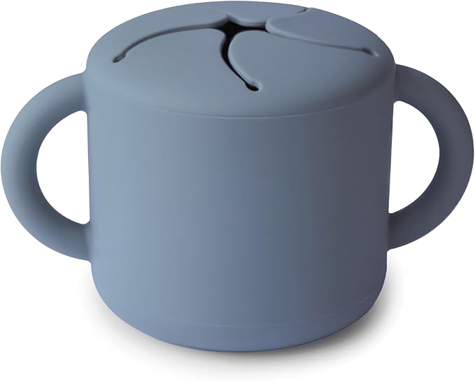 Designed with two small handles for an easy grip for small hands, our silicone snack cup is spill-proof for baby to take around the house or car; The snack cup is a must-have for toddlers on the move; The no-slip silicone bottom in BPA-free, chemical-free silicone is the perfect self-feeding accessory