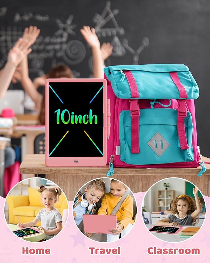 - 🎨【EYES PROTECTION WRITING TABLET】This 10 inches drawing tablet adopts 2024 latest LCD pressure-sensitive technology, easy for view and graffiti, no radiation, no glare, no ink, no dust, won't hurt children's eyes like other electronic products and protect their skin and lungs from chemical pigments or dust. No discomfort even after prolonged use. Very suitable for toddler children. Wonderful toys for 3 4 5 6 7 8 year old girls boys kids.