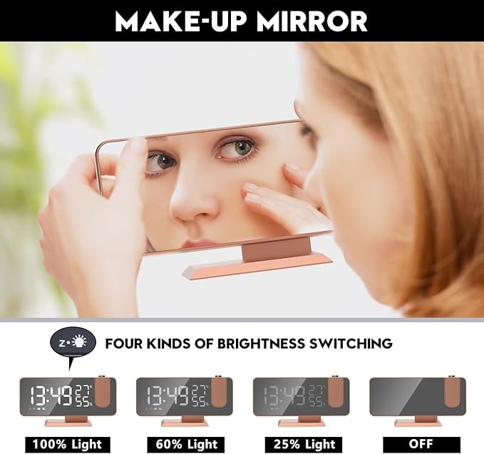 Projection Digital Alarm Clock for Bedrooms, Alarm Clock Radio on Ceiling, USB Charger Port, Temperature & Humidity Display, 7.3” Large Mirror LED Display,12/24H,Snooze,Dual Loud Clock- 4 Dimmer