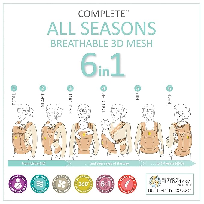 • Six Positions: The LÍLLÉbaby Complete baby carrier features 6 ergonomic carry styles for 360-degree babywearing including front, backpack and hip styles.