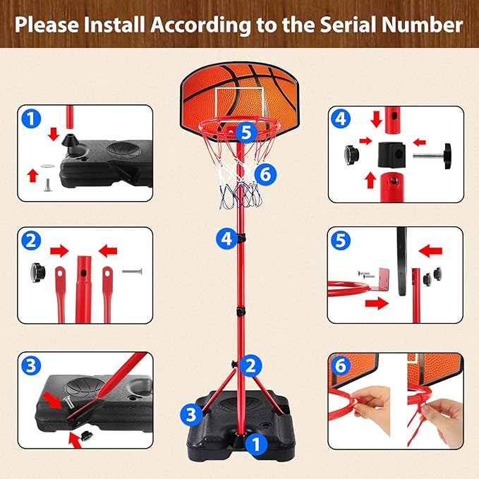 - 【Easy to Assemble】The indoor basketball hoop for kids includes wooden basketball backboard, bouncy ball, pump, rim, net, base and other accessories. Extremely easy to assemble and take apart referring to the installation instruction. If there are missing accessories, damages or any assemble problems, please feel free to contact us.