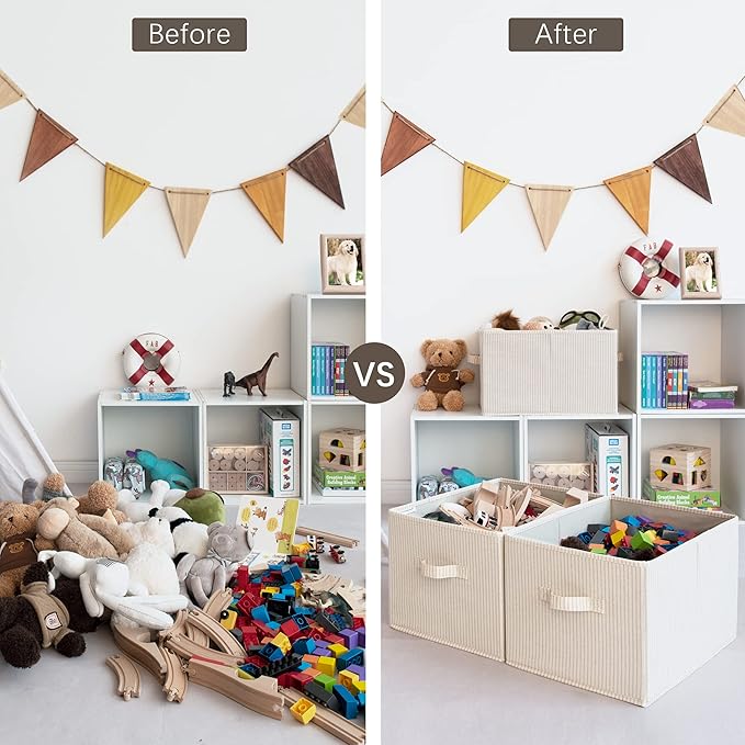 • The polyester-blend fabric and the inserted heavy-duty boards of the storage bins allow them to support a weight of up to 30 pounds.