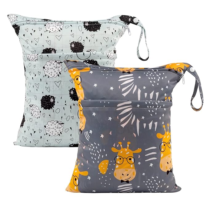 ALVABABY 2pcs Cloth Diaper Wet Dry Bags Waterproof Reusable with Two Zippered Pockets Travel Beach Pool Daycare Soiled Baby Items Yoga Gym Bag for Swimsuits or Wet Clothes LZ1920