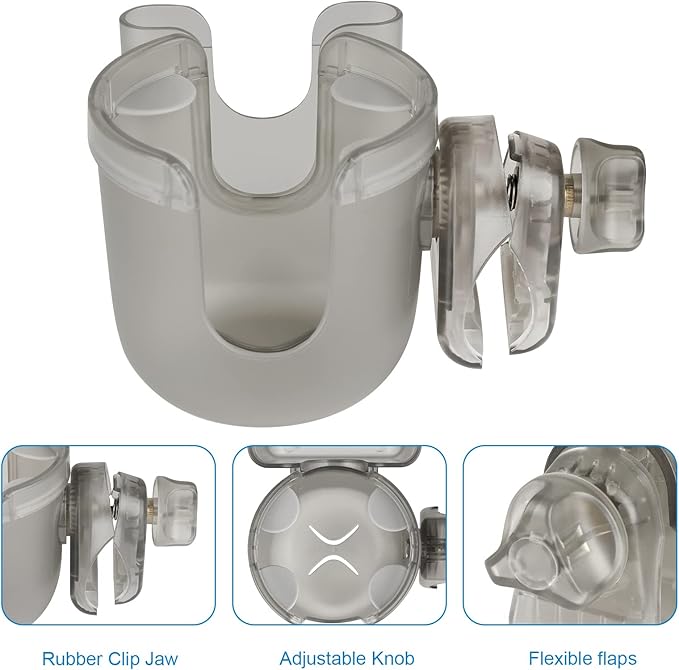- Stable Clamp: The clamp designed with rubber pad, it helps lock the cup holder onto the bar without movement. The clamp can also rotate 360 degrees, and it is adjustable to fit different size rods which diameter is 0.55-1.7 inches.
