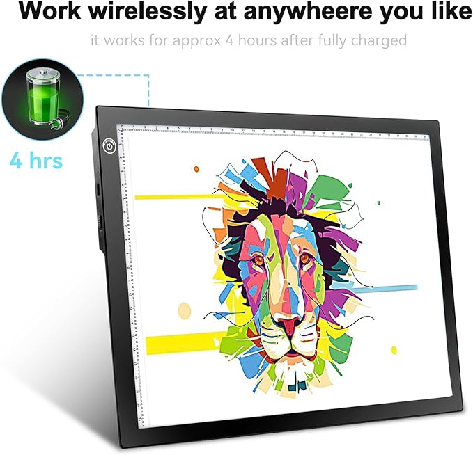 - Rechargeable Battery Powered - This light tracing box let you enjoy the convenience of working wirelessly at anywhere you like with the built-in battery, works for approx 3.5 hours after fully charged. Battery and USB mode are both available.
