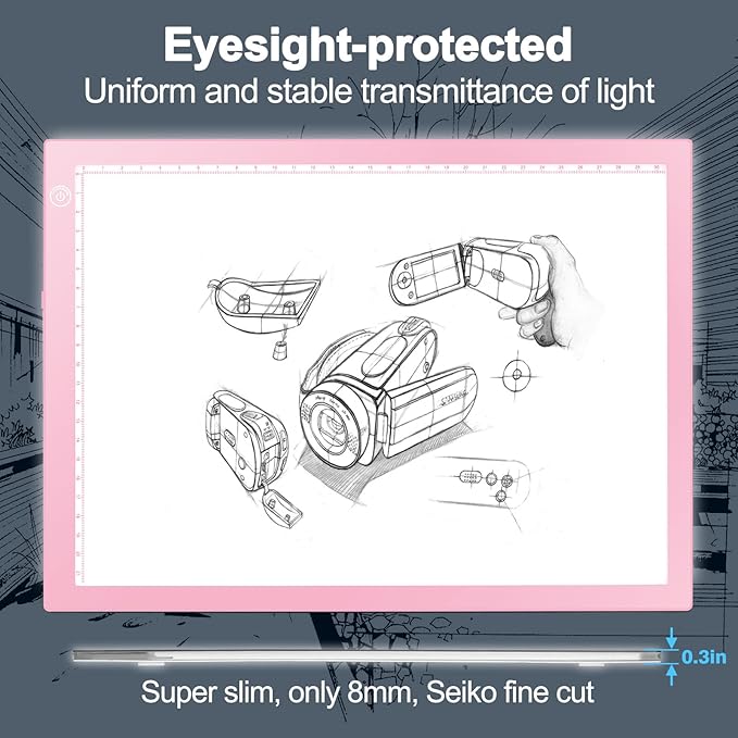 LitEnergy Rechargeable Battery Powered Light Tracing Box, Ultra-Thin Adjustable USB Power Artcraft LED Trace Light Pad Size A4 for Drawing, Streaming, Sketching, Animation, Stenciling (Pink)