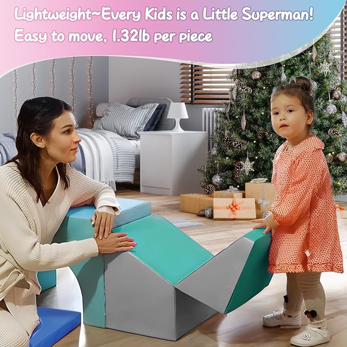 - TWO WAYS TO PLAY:The slope climbing toys in the toddler foam climbing blocks can be folded into a square or put down to use as a slide, which not only increases kid's interest but also creates building ability for them.Brightly colored foam blocks can not only be combined into various shapes, but also become seats for little princesses and princes