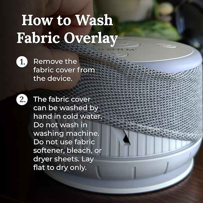 - SOPHISTICATED DESIGN: Dohm Nova’s washable fabric overlay allows sound to seamlessly pass through while also providing a sophisticated style that matches any decor. For care & cleaning, simply remove the fabric overlay and wash by hand in cold water.