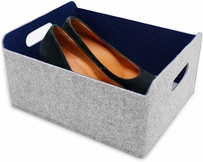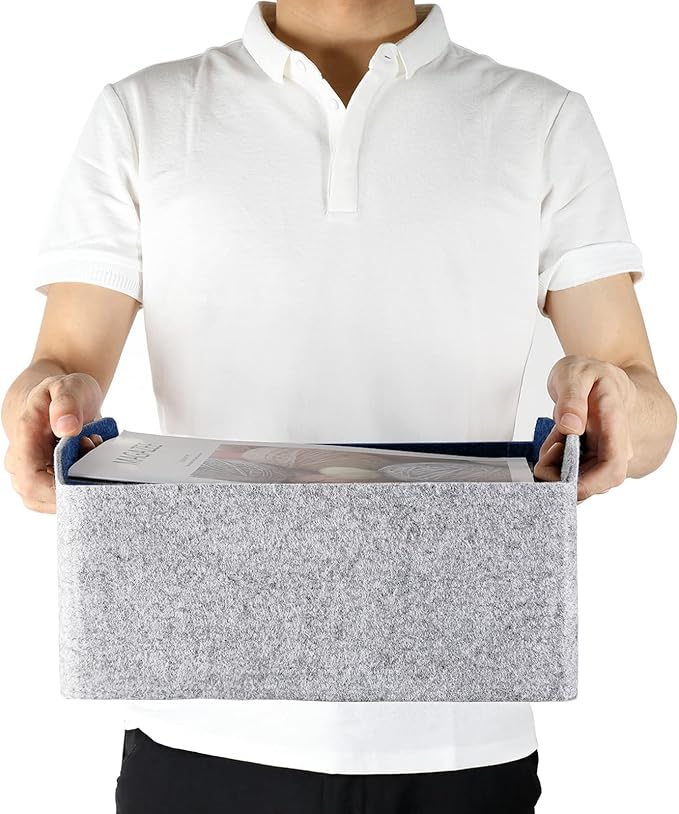 - 【Sustainable material】 Recycled felt with comfortable touch feeling, soft to prevent scratching,flexible for space saved up on desk, office ,bedroom, closet ,kitchen,bathroom or anywhere you desire with these stylish storage and organizer bins.