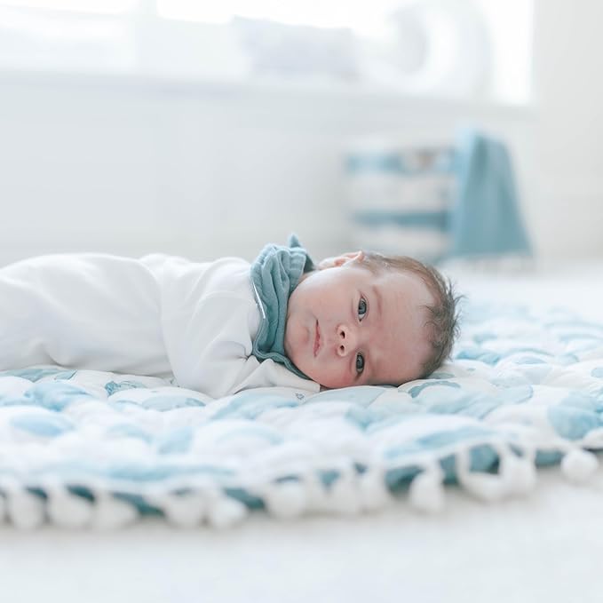 Crane Baby Activity Mat, Baby Play Mat Whale Print, Ocean Nursery Decor for Boys & Girls, Infant Tummy Time Floor, Ocean Nursery Decor, 40" x 40"
