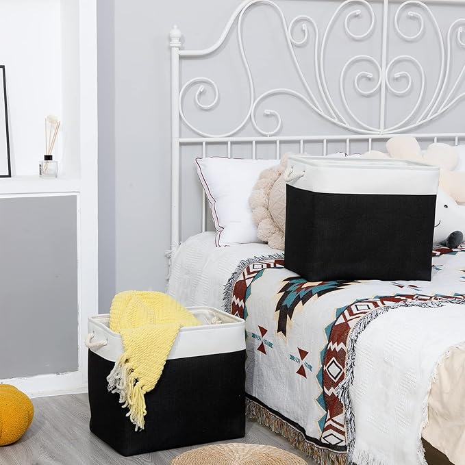 - [Cotton Rope Handles&Premium Fabric] Lightweight storage baskets with cotton rope handles, easy to move and more comfortable grip. Sturdy soft handles on both sides are convenient to retrieve from shelves. These storage baskets are made of durable fabric which is strong and lightweight