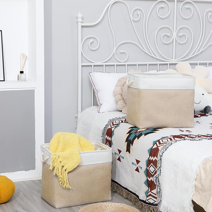 - [Cotton Rope Handles&Premium Fabric] Lightweight storage baskets with cotton rope handles, easy to move and more comfortable grip. Sturdy soft handles on both sides are convenient to retrieve from shelves. These storage baskets are made of durable fabric which is strong and lightweight