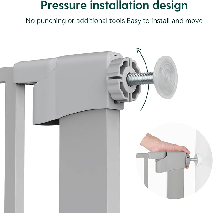 - EASY SET UP: Simple and quick pressure installation, not require additional tools and no holes in the wall. NOTE: Before installation there will be a gap between the gate latch and the frame which is NOT a defect and it is NOT bent. This gap will be eliminated once installed.
