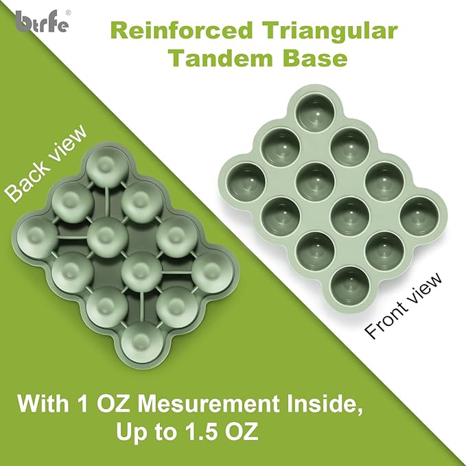 Baby Food Storage Container - 1.5oz x 12 Pods Silicone Freezer Tray with Lid for Homemade Baby Food, Fruit Purees, Vegetable & Breast Milk (Green)