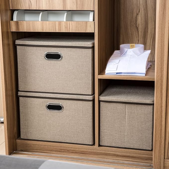 【Fashionable Bins】Designed to match interior decor and style in any room in the home or office. Enjoy the relaxing ambiance of the soft khaki and natural brown neutral color scheme.