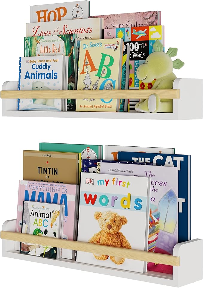 - Durable Design: Solid wood construction ensures these nursery book shelves can hold items from early childhood to the teenage years.