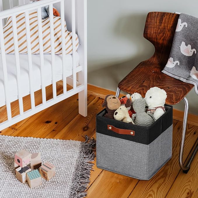 - 【Sturdy Leather Handles 】Sturdy thickened leather handles and metal iron buckles make cube storage basket easy to carry even with a heavy load. Cardboard is inserted at the bottom and sides to provide support, so that these decorative storage cubes 12 x 12 to stand on, holding the shape well and can be used for a long time
