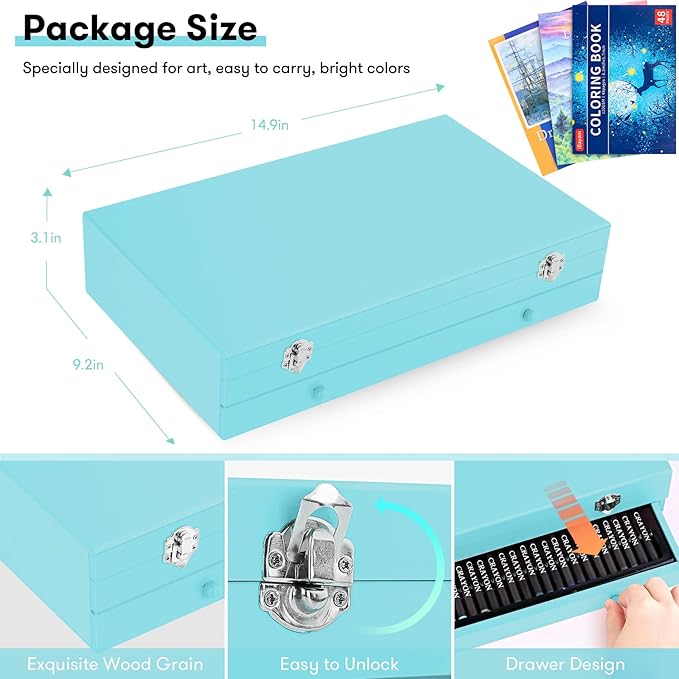 - 【Premium Quality, Deluxe Art Kit】The Deluxe art case has everything you need to get started creating in a compact wooden case! You can begin drawing, coloring and painting as soon as you open the box. Specially designed with 2 big sketchbooks, 1 coloring book, 1 Gift Box. Great art set for any level of artist. This art case makes a great Gift for adults and kids, girls and boys, they are going to have so much fun!