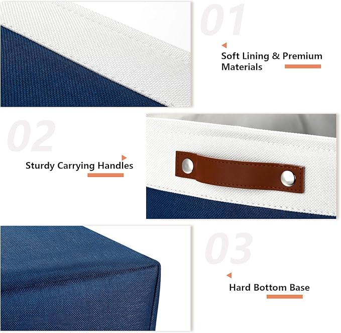 DULLEMELO Large Storage Baskets with Leather Handles for Linen Closet and Home Office, Decorative Baskets for Toys Storage (White & Blue)