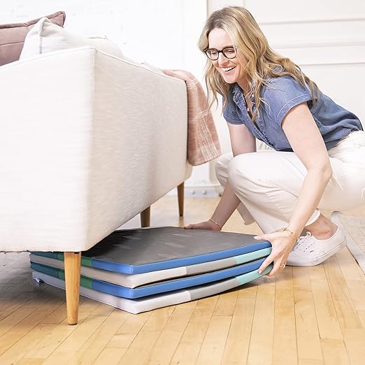 Folding Design: Quickly assemble with sewn-in stay-put fasters; mat folds into a compact square for space-saving storage in closets, large bins, or under the bed when not in use