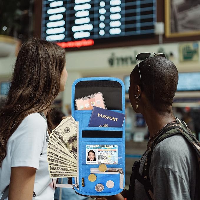 - RFID Blocking: Our neck travel pouch with RFID Blocking material can perfectly protect your important personal data such as smart cards, credit cards, driver's license, debit cards and other RFID cards.Stay away from digital theft during business trips, travels and excursions to make the journey safer and more comfortable