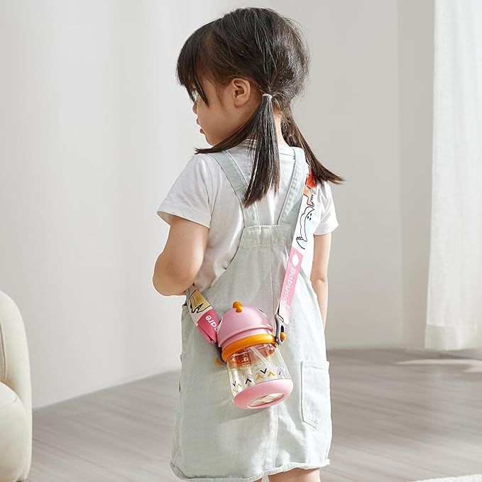 bc babycare Straw Sippy Cups for Toddler, No Spill Sippy Cups for Baby 1+ Year Old, Transition Weighted Sippy Cup with Straw and Strap, 10oz/300ml, Pink