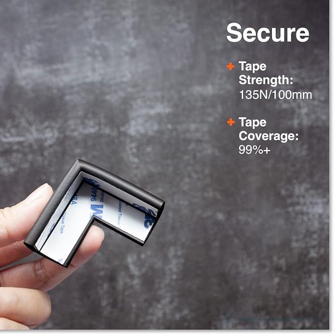 - SECURE ADHESION: Includes authentic easy-to-peel 3M double-sided tape (30 feet of tape for the edge guard, not pre-taped), with 4 corner guards pre-taped. Onyx black color goes well with black or dark color furniture, such as tables, chairs, chests, shelves, stairs and desks. All text and photos/images in this product listing are copyrighted materials. Copyright: 2012 Mayapple Baby LLC, Brooklyn NY, USA. Designed in USA.