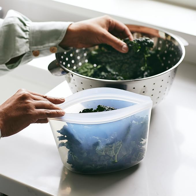 - REUSABLE, REWASHABLE CONTAINERS: Stasher silicone reusable storage bags make it easy to ditch single-use plastic and meet endless household needs. Safe for the dishwasher, microwave, oven (up to 425°F), and more.