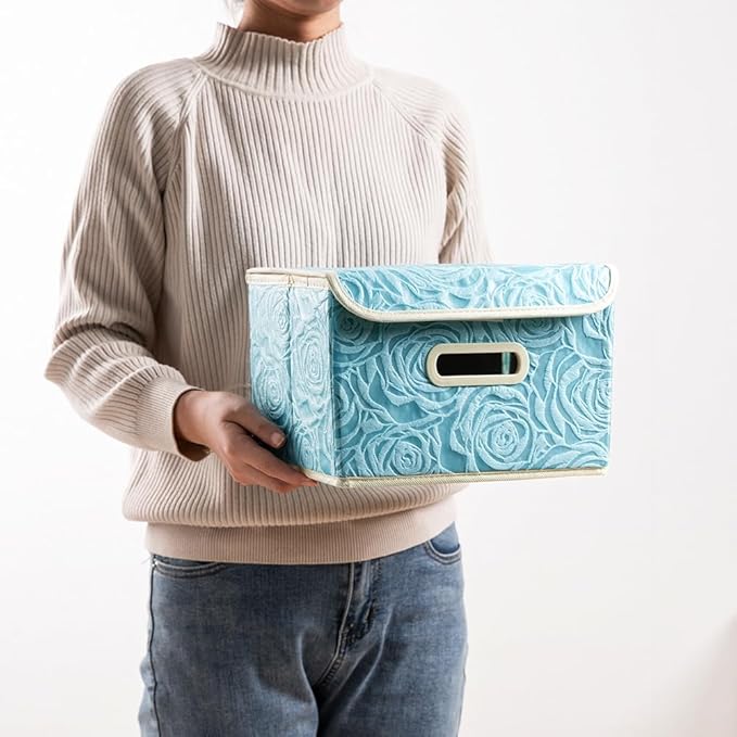 【Fashionable Bins】Designed to match interior decor and style in any room in the home or office. Enjoy the relaxing ambiance of the soft blue and natural white color scheme.