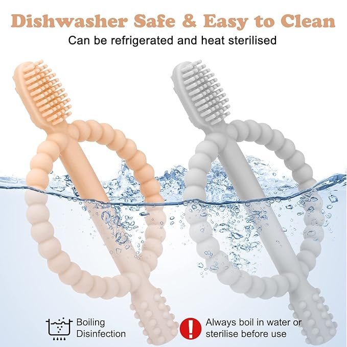 - SAFE AND RELIABLE - Your baby won’t hurt themselves, because it’s super soft and exactly the right size and shape so babies can’t gag or choke themselves. Suitable for 0+ age, with no parts to break off and zero choking hazard. Contains no liquids or gels that could erupt or leak. This baby teething toothbrush is an IDEAL GIFT for a baby!