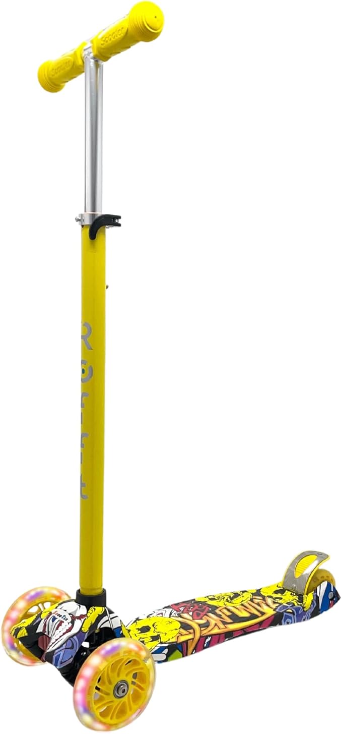 Maxi Scooter for Kids Ages 6-12 Lean-to-Steer 3 Wheel Scooter for Kids Ages 6-12 PU Light-Up Wheels Kids Scooter Adjustable Height Light Weight Aluminum Scooters T-Bar Colorful Design Printed
