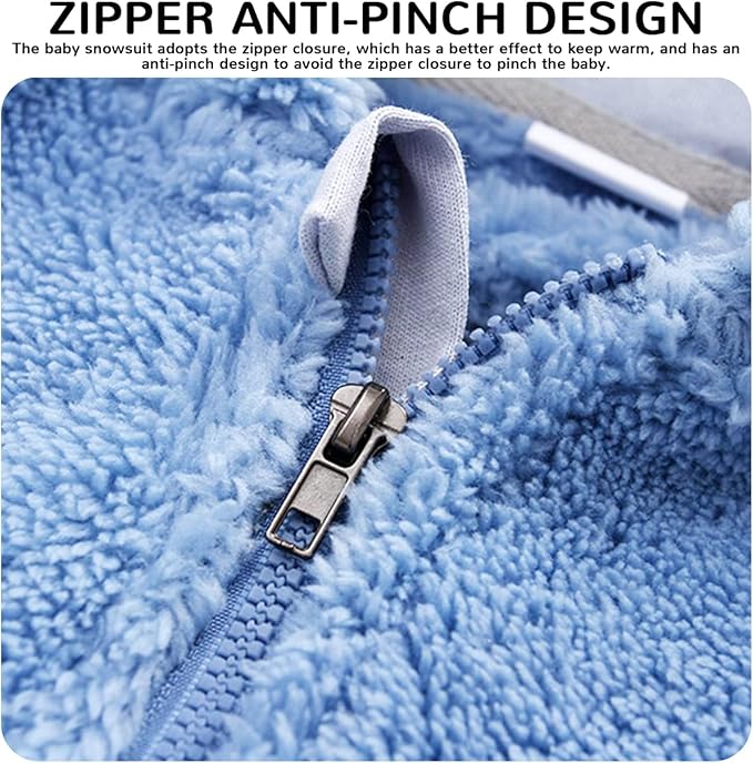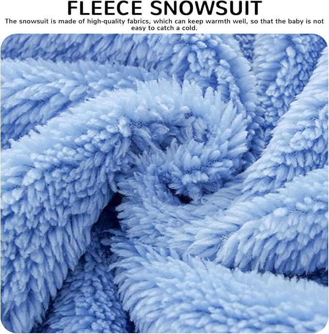 - ❤♥Material: This baby snow suit made of high quality polyester fiber, double lining, fine polyester fiber cares for baby's delicate skin. The newborn winter outfit hoodie whole body jumpsuit design, keeps the baby's head and ears inside and warm when outing. The toddler boys & girls snow suit accompanies the baby through the cold winter.